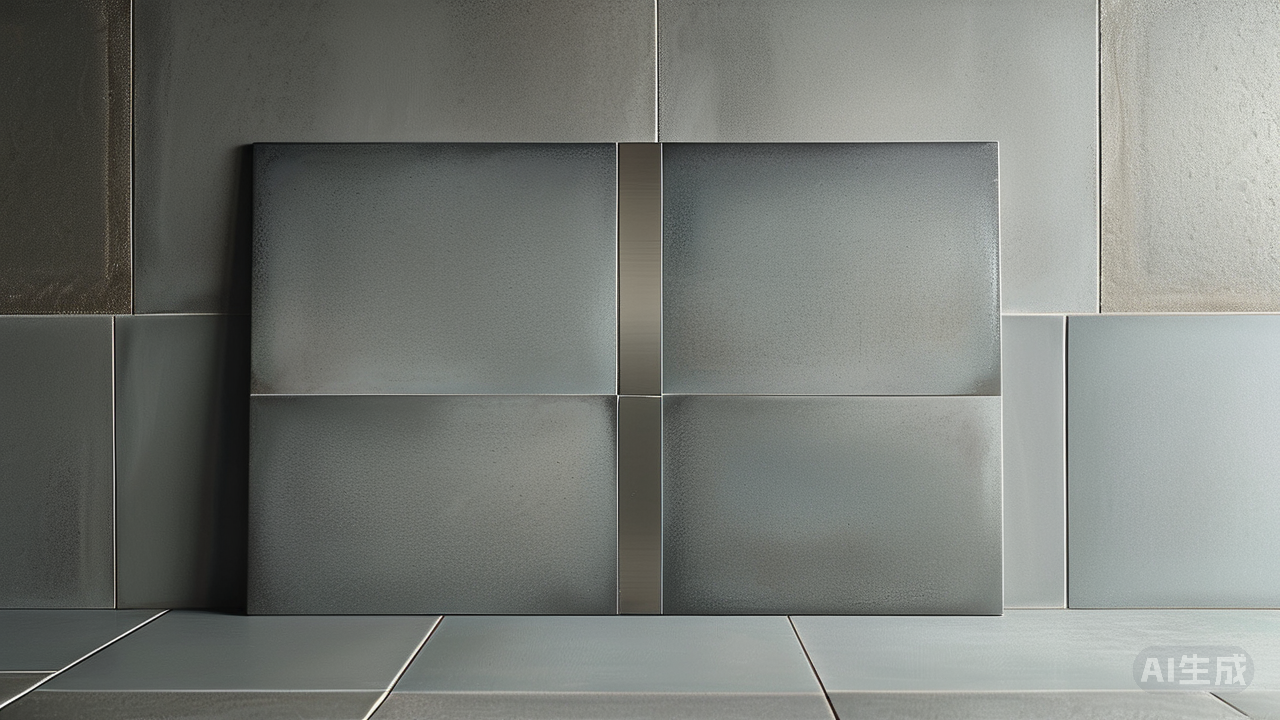 金属质感瓷砖镶嵌与哑光砖的搭配,勾勒出现代轻奢的精致轮廓。当金属质感瓷砖的冷冽锋芒,悄然嵌入哑光砖温润的基底,一场关于现代轻奢的材质协奏便徐徐铺陈。这不是直白的宣言,而是空间自身发出的精致密语。 哑光砖如沉静的画布,以其不喧哗、不反光的质地,悄然铺展于空间的骨骼之上。它那细腻的肌理仿佛蕴藏着无数未言的故事,触手温润,目光所及皆成沉静底色。这份内敛的包容,正是让金属得以施展魅力的基石。