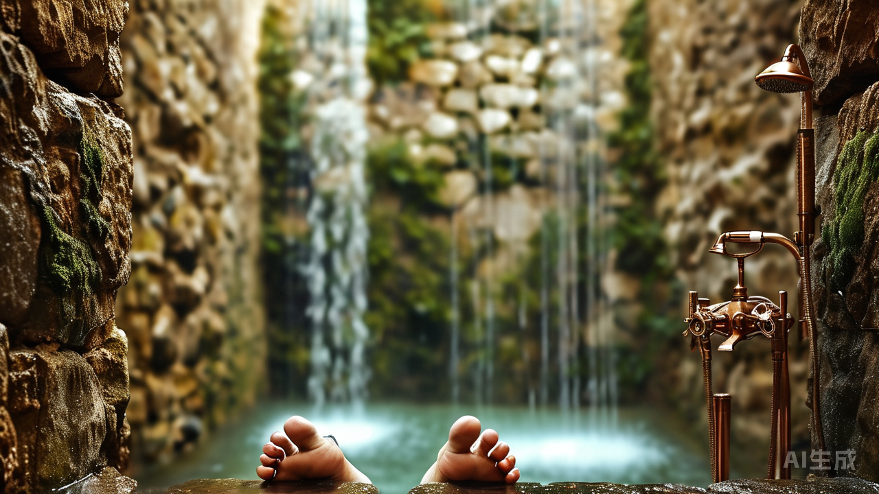 这精心营造的“旧”,并非刻意追摹过往的叹息。当水流自那古铜喉管中沛然涌出,沿青石纹理蜿蜒流淌,暖雾氤氲腾起,石之粗砺与铜之温润便悄然相融。此时此地,都市的喧嚣被青石厚墙温柔阻隔,只剩水声潺潺,如空谷清音。石头的冷冽被水汽中和,五金件的微光在雾气里脉脉低语,一种被山野环抱的笃定与宁静缓缓沉淀下来,包裹每一寸肌肤与呼吸。