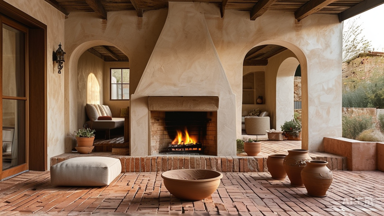 穿过质朴的拱门,连接内院或露台的过渡空间,地坪往往被陶土砖精心勾勒。它们承载着主人沾着泥土的步履,也映照着葡萄藤架筛落的点点碎金。砖体沐浴阳光,蒸腾出几乎可见的、带着泥土清香的暖意。这暖意并非燥热,而是大地在阳光下舒展筋骨的平和气息,它无声地浸透砖石,渗入木梁,最终弥漫于整个栖居之所。