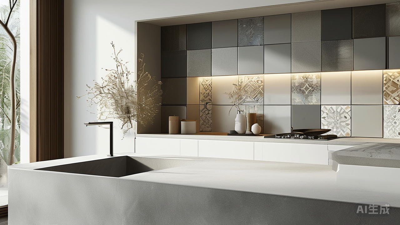 瓷砖的疆域早已突破传统界面,在空间中被赋予更自由的角色。它不再局促于厨房防溅板或浴室墙面,而是大胆跃上客厅主墙,甚至整面覆盖天花板,以连贯的材质语言模糊空间界限,塑造出整体、纯粹的现代氛围。更有前卫者,将其精心切割、塑形,融入定制家具之中——一张以柔润哑光瓷砖为台面的岛台,或是一方几何立体瓷砖构成的独立盥洗台,冰冷的陶瓷开始讲述温暖的生活故事。