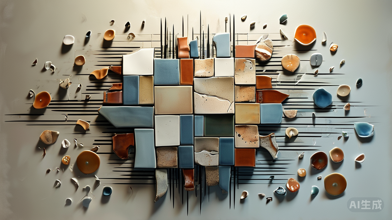 切割重组,节奏自生。 规矩的尺寸常如无形的桎梏。有人偏要将其敲碎,如同打破语言的僵化。大小不一的瓷片如音符般重新编排,在墙上或地面谱出独特的韵律。断裂边缘的锋利与拼合线条的流畅彼此对话,碰撞出一种叛逆的美学。那看似无章的瓷片排列,恰似主人性格的镜像,拒绝平庸的节奏,只书写自己内心的律动。